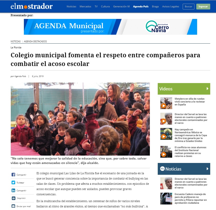 El colegio municipal Las Lilas de La Florida, fue el escenario de una jornada en la que se buscó generar conciencia sobre la importancia de combatir el bullying en las salas de clases. Desde ya, es importante dejar en claro que este establecimiento, como muchos otros del país, pueden tener episodios aislados de acoso escolar, pero jamás es una tendencia irremediable.