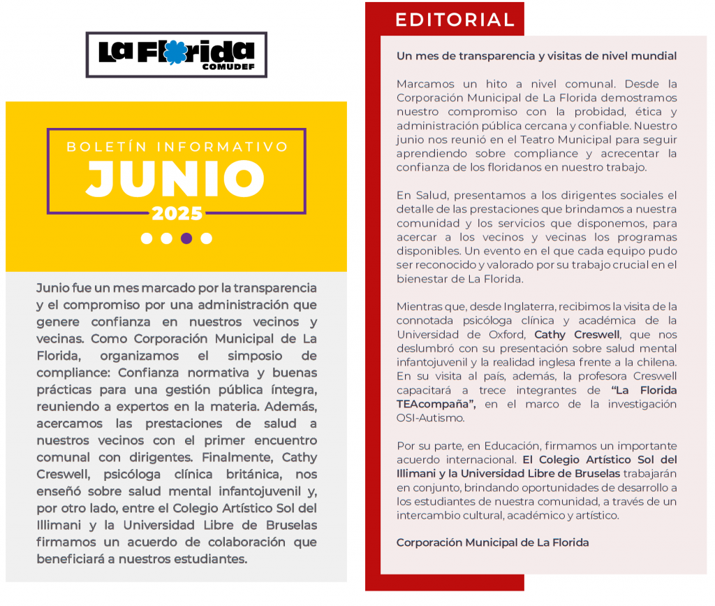 La FloridaBoletín COMUDEF junio 2025 Publicado el 1 de julio de 2025 Por Autor: Comudef ver / descargar PDF Boletín Alsino junio 2025 En La Florida hay un futuro por descubrir