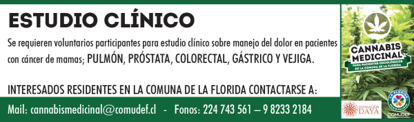 La Municipalidad de La Florida y la Fundación Daya, requieren voluntarios para el estudio clínico sobre el manejo del dolor en pacientes con cáncer. Para más información, haz click sobre la imagen.